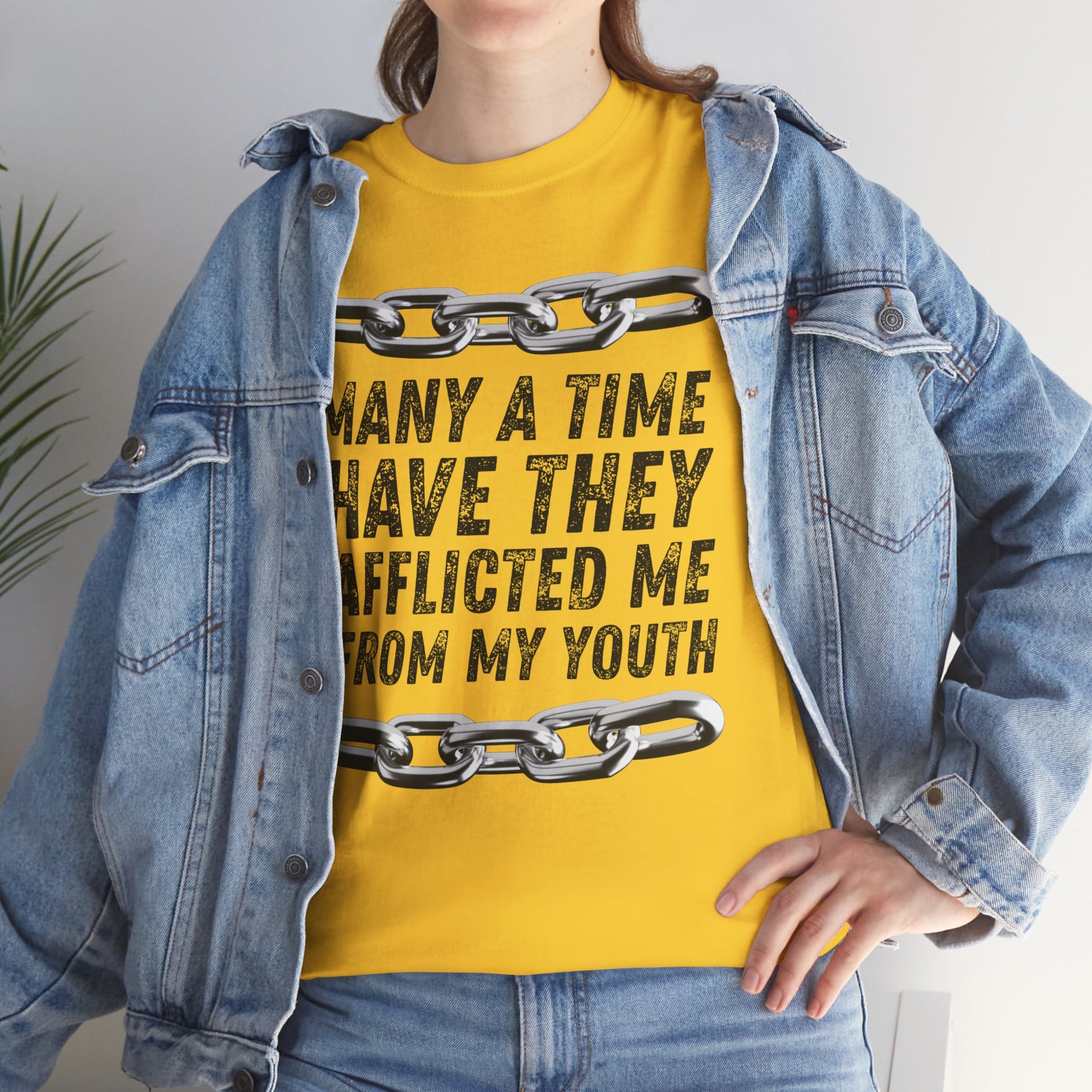 Embrace comfort and style with this Unisex Heavy Cotton Tee, perfect for declaring God's truth while staying cozy. Its soft, high-quality fabric delivers a smooth touch against your skin, making it an ideal choice for casual outings or relaxed home days. This tee is versatile enough for layering or as a standalone piece, offering a timeless look that suits everyone from trendsetters to those seeking simplicity. Perfect for religious gatherings, motivational events, or as a thoughtful gift during holidays such as Christmas, Easter, or birthdays, this tee resonates with anyone looking to inspire resilience. Show your strength and faith through fashion with this meaningful addition to your wardrobe!